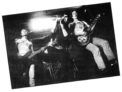 | The intensity level immediately leaps about 300 percent, He looks manic. "I hate shit. I hate hippies and what they stand for. I hate long hair. I hate pub bands. I want to change it so there are rock bands like us." |