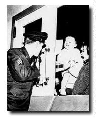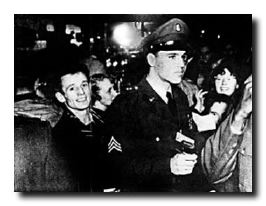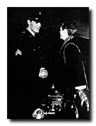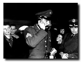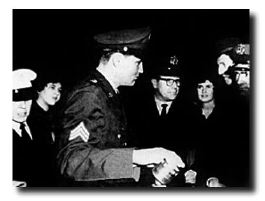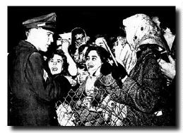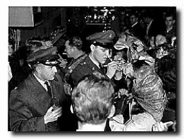 | Despite a massive security clampdown,the news leaked out that a mystery V.I.P. was flying in ... and when Sgt. Presley stepped off the plane, local fans rushed to greet him. And, without the restraining influence of aides and his personal manager, "Colonel" Tom Parker, the star felt relaxed enough to mix with them. |