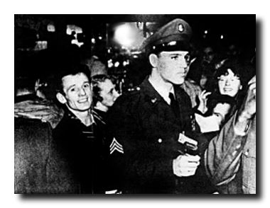 In the N.C.O.'s mess. Directly behind Elvis is Robert Ghee, the photographer's brother.