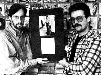 Quiz organiser Roy Deane (left) presents Bill Fair with his Marc Bolan