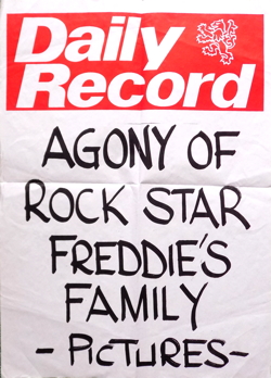 These posters were used to advertise newspapers carrying major rock and pop related stories. They were obtained from newsagents willing to keep them for me and collected a day or two after the story had run.