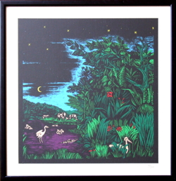 Very Rare Fleetwood Mac promotional numbered limited edition print of the artwork for the 1987 album, "Tango In The Night". This is number 38 of a run of only 100. The original, known as "Homage a Henri Rosseau", is by Australian artist Brett Livingstone-Strong and hung in Lindsey Buckingham's home. For 27 years, this hung on one of my walls before going into storage. |
