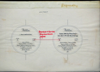 Phil Collins artwork/layout for the 12" labels for the 1989 E.P., "I Wish It Would Rain Down". The layout comes with bottom paste-up layer and attached top layer with instructions for the printers. |