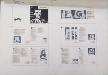 Peter Gabriel artwork/layout for the CD booklet for his 1980 album, "Peter Gabriel". The layout comes with bottom paste-up layer (pictured on the right) and attached top layer (seen in place on the left) with instructions for the printers. |