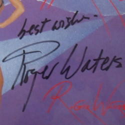 Roger Waters autographed cover for his 1984 album, "The Pros and Cons of Hitch Hiking." I had this framed and glazed in stunning matching colours for the main exhibition of Aberdeen's Alternative Festival in the early 1990s. Since then it's spent most of it's time hanging on a wall before it went into storage some years ago after selling my home in Scotland. Size mm x mm. |