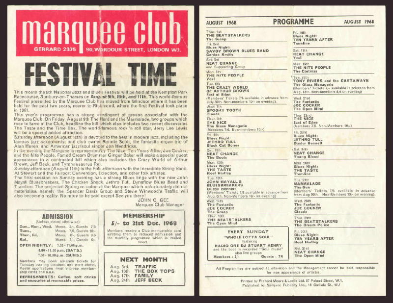 Marquee Club/Sunbury Festival Handbill August 1968