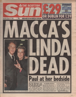 The Scottish Sun 1998-04-20. Linda McCartney's Death. |