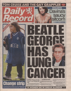 Daily Record 2001-05-04. George Harrison's Cancer. |