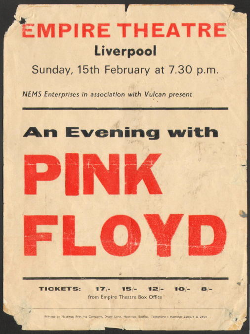 Pink Floyd Empire Theatre Liverpool Handbill 15th February 1970