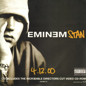 Approx 12" X 12" double-sided display card. Other side features the Marshal Mathers LP special edition with a moody shot of Eminem crouched against a barred window. Slight crease on bottom edge of this very rare display. £ 12 (post and packing included)